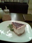 Для начала внимательно всмотримся в представленный снимок. Что мы видим? Лично я долго думал и решил, что всё-таки это тирамису . Конкретно могу сказать о нём, что был он свежайший, каким он бывает, если только-только приготовили, а не вынули откуда-то из закромов холодильника. Почему повёрнут не фасадом? - Очень просто - он был настолько нежен , что при малейшем воздействии - у него отпал носик. Произошедшее было настолько неожиданно, что от умиления едва не навернулась слеза - сытый автор бывает неумеренно эмоционален! Наконец,... однако пора бы уже перейти собственно к увлекательному рассказу про мой визит в Jcafe, что на Первомайской.