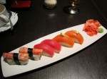 Между тем, вступил в контакт с официантом Региной. Разобрались с заказом довольно быстро. Результат можно увидеть на фото с сушками. Их, как известно, в Планете Суши по каждой позиции сразу по паре подают. Вот, и мне досталось шесть таких очаровательных сушек, которые, думаю, заинтересуют всех, кто давно сюда не наведывался. Вкус захватывающий, каким он и должен быть в Планете Суши.