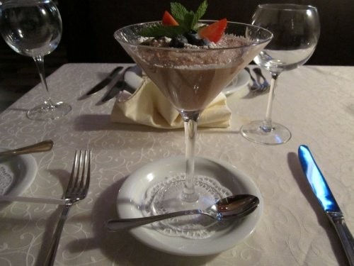 В общем, нормально и пообщался, и откушал , и вообще - салатик боярский, жаркое из мяса курицы и прочее, а самое главное - это десертик "Семь пятниц" (на фото), творожный, измельчённая бисквитная крошка и черника . Очень понравился - рекомендую зайти и попробовать! А скоро обещают и другие радостные изменения по кухне. Ждём!!!