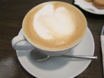 Не помню четко, что я такое здесь продегустировал в последний раз, поскольку чек по истечении времени не обнаружил. Однако на фото виден капучино. Рисунок не вполне ясен - то ли сердце, а, может, быть луна или какое иное тело. Сверх того, по рекомендации официанта съел миниатюрный кусочек какого-то торта. Не помню уже и какой это был торт, но и сейчас воспоминания о том торте носят приятный характер.