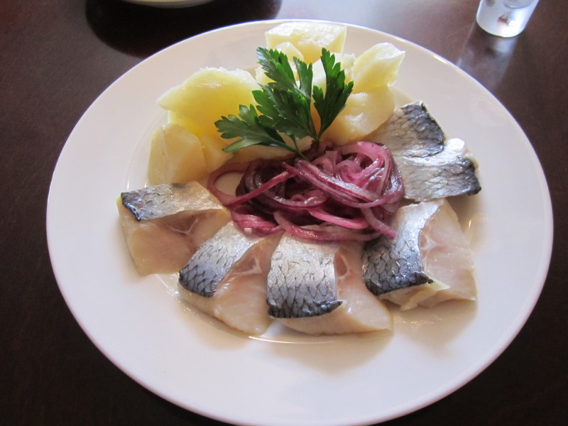 Итак, до сих пор работает летняя веранда - она здесь так популярна и, хотя уже прохладно, при наличии солнышка люди продолжают располагаться именно здесь. Но мне хотелось в столь любимые стены и зашёл! На входе встретила хост Айгерим - довела до самого столика (у окна!) и оставила наедине с меню. Сразу нашел искомое - остро нуждался в селёдочке с картофелем и ещё больше в водочке, остановил свой выбор на водке Эристофф, хотя из импортных здесь есть ещё и Финляндия в двух позициях.