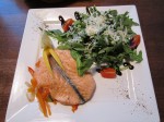 Обошёлся в этот раз без знаменитого в этом кафе супчика минестроне. Жаль, но больно плотно поел. На горячее был запеченный лосось с зеленым салатом. Естественно, вид и оформление выше всяких похвал. Поглощалось это великолепие на одном дыхании, то есть мгновенно. Всё самого приятного свойства.