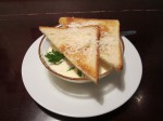 Затем был салатик с американскими мотивами - Монро, думаю, сесть в следующий раз с видом на Мэрилин - сидеть под тамогавком на стене немножко подустал. Салатик был традиционно хорош. затем последовал мой любимый французский луковый суп. Пожалуй, можно было бы поспорить с поваром относительно его концепции - откровенно говоря, люблю, когда гренка в луковом супе утоплена в восхитительной консистенции, она уже там набухшая, такая аппетитная!
